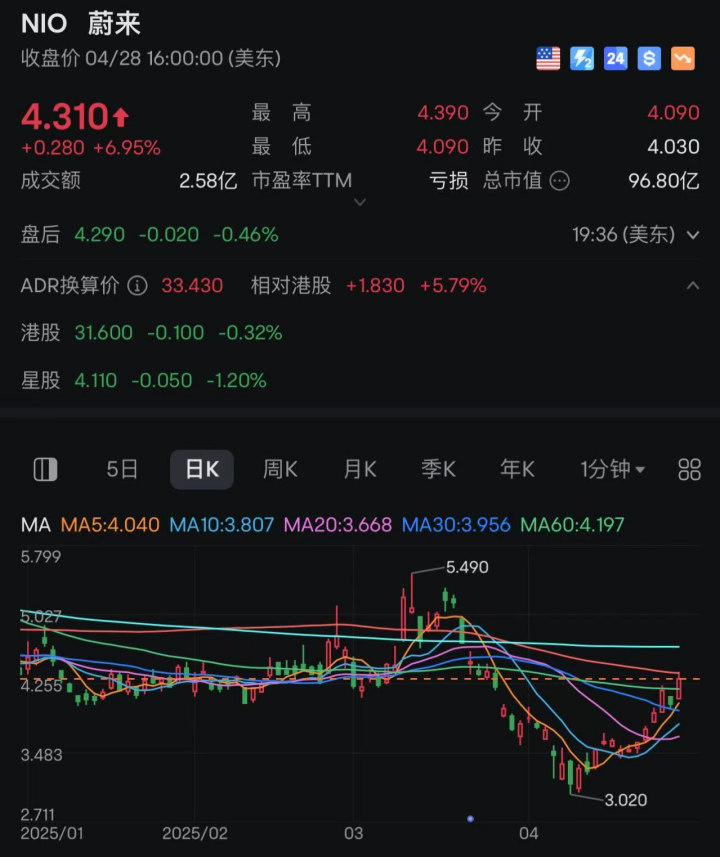 新能源汽车中概股多数上涨。蔚来涨近7%、极氪涨超4%、理想汽车涨超3%。